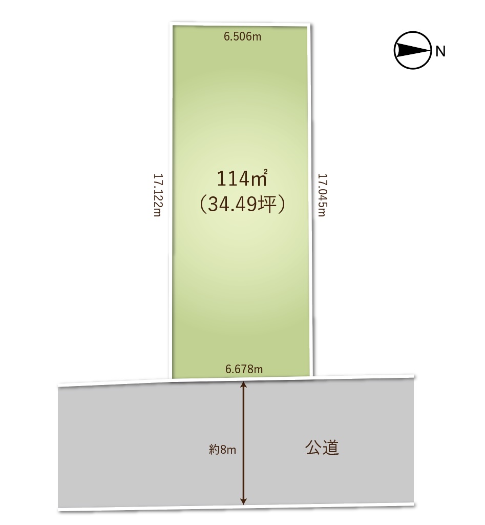 | 接道状況 | 状況:一方 東側 幅員8m 公道に6.7m接面 |